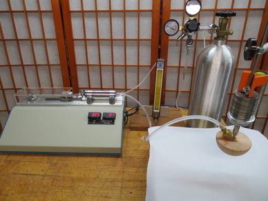 Carbon dioxide and oxygen concentrations are measured using laboratory-grade analyzers.